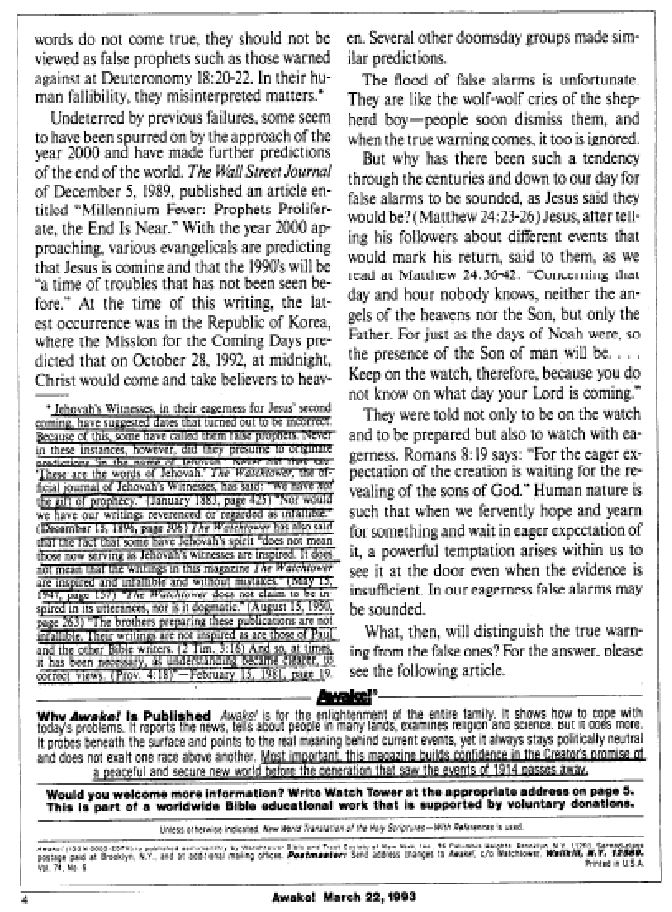 Awake!, March 22, 1993, p4 - the WBTS continue their attempts to hide their past: